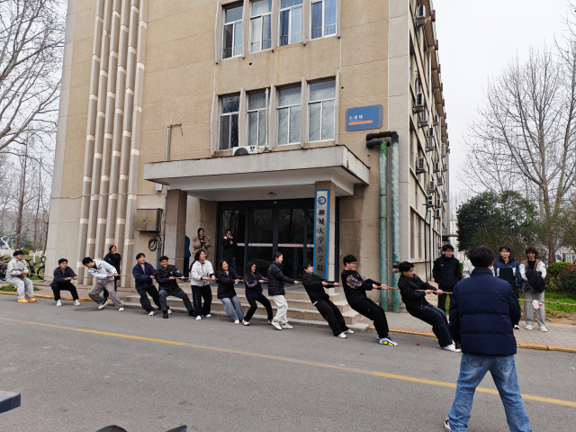 2025级1班团支部与2025级2班团支部于东校区一号办公楼前开展春日趣味拔河团日活动。